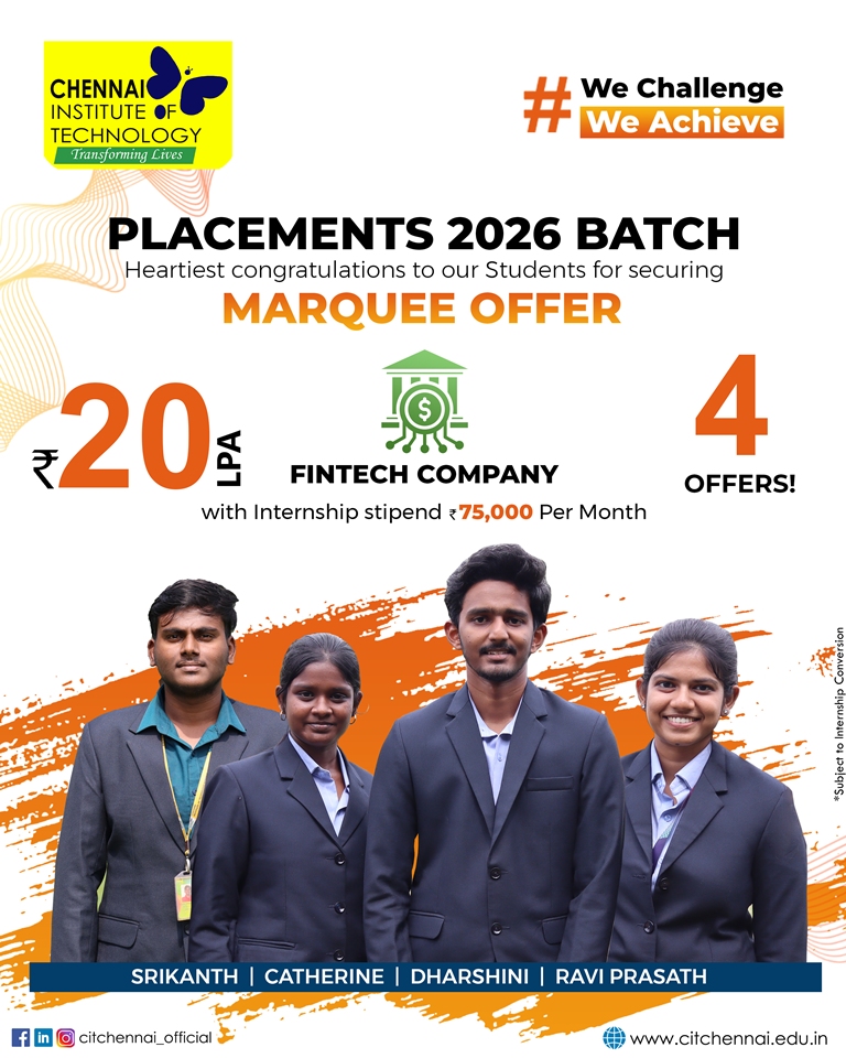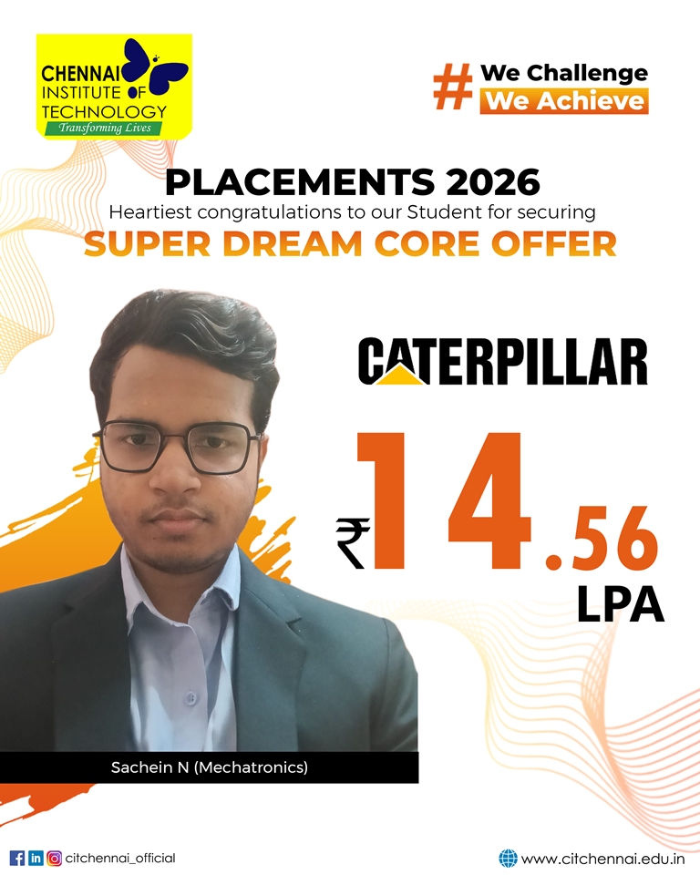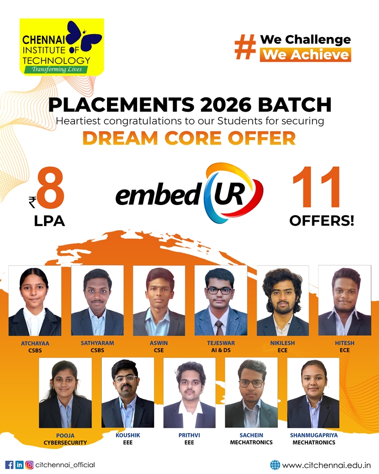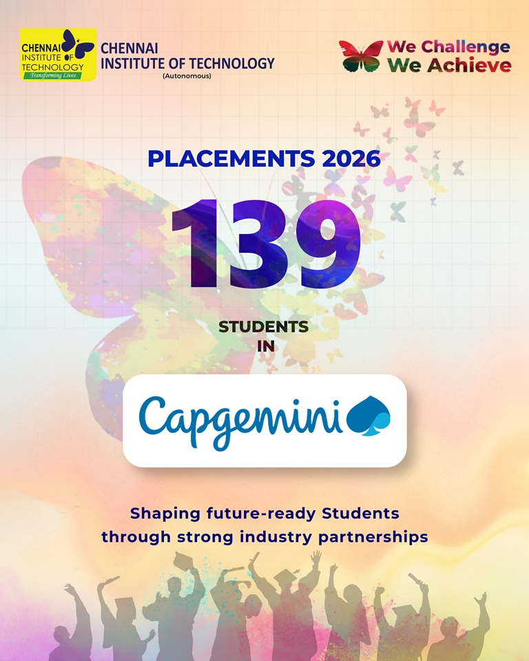 Chennai Institute of Technology attracts over 250+ recruiters from diverse domains of companies providing a wide range of opportunities through